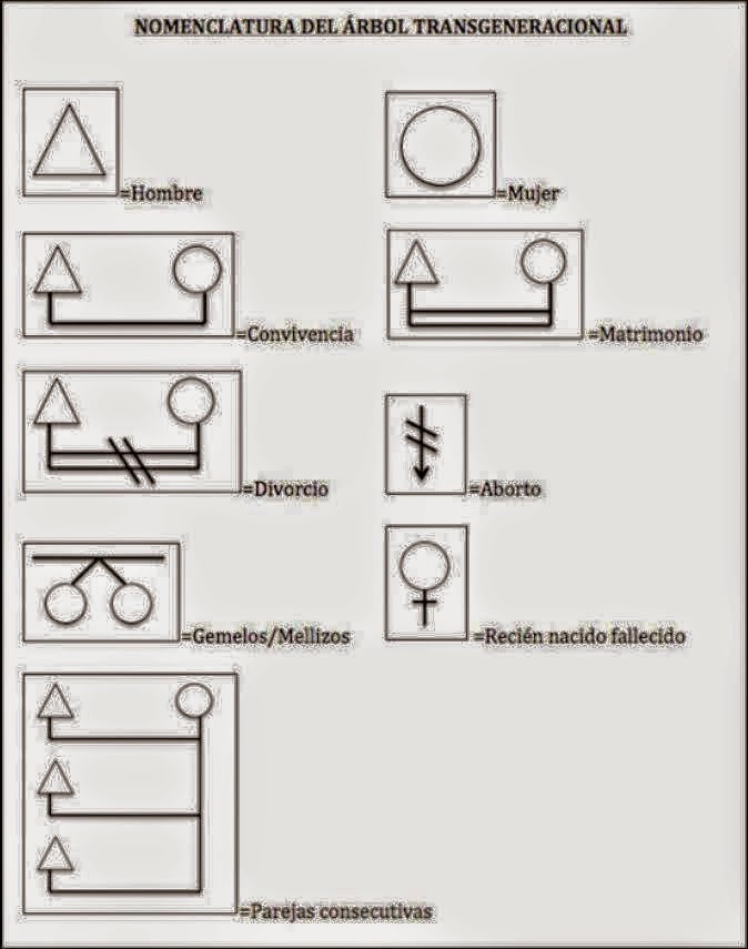 Para estructurar el árbol vamos a ayudarnos de la nomenclatura del árbol genealógico. Tal vez esto puede resultar lo más engorroso, pero un árbol claro y ordenado ayuda muchísimo a la hora de buscar la historia. He de añadir que algunas personas se han sanado de un síntoma en la misma realización de su árbol genealógico.